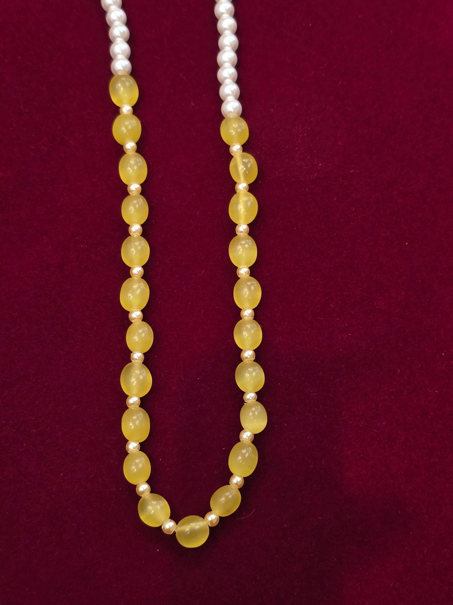 This colourful pearls necklace features a vibrant mix of lustrous, hand-selected pearls, each one chosen for its unique hue and natural shine. Strung securely along a smooth, durable thread, the pearls create a beautiful gradient of colour that catches the light with every movement.